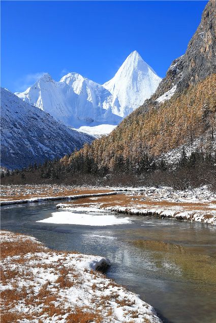 稻城亞丁給人的印象最深的應(yīng)該是一片片令人沉醉的秋景或那無處不在的青楊林,更多人不知道的是,其實稻城亞丁在冬季的美麗更為引人入勝。山巒與樹木銀裝素裹,瀑布與湖泊冰清玉潔,藍色湖面的冰層在日出日落的溫差中,變換著奇妙的花紋細(xì)細(xì)的水流發(fā)出沁人心脾的音樂。不管是冰天雪地還是人文風(fēng)情,或是原始風(fēng)光,冬季的稻城亞丁都能為您帶來最美好的視覺盛宴。