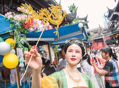 前不久,上海豫園打造的沉浸式國(guó)潮主題街區(qū)——“食玩校場(chǎng)”開啟,國(guó)潮品牌、大牌美食、網(wǎng)紅零食、環(huán)球輕食、潮流手辦、超級(jí)IP衍生品齊聚,充滿了煙火氣。圖為一名身著漢服的女生展示可以吃的糖畫。