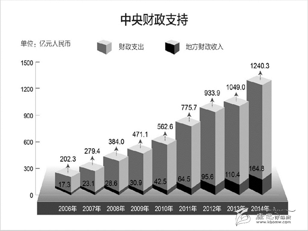 中央政府歷來高度重視西藏的發(fā)展,十分關心西藏各族人民的福祉,舉全國之力支援西藏,以優(yōu)惠的政策和強大的人力、物力、財力支持,推動西藏的發(fā)展進步。從1952年到2014年,中央政府對西藏的各項財政補助達6480.8億元,占西藏地方公共財政支出的92.8%。1980年以來,中央先后六次召開西藏工作座談會,從中國社會主義現代化建設全局出發(fā),對西藏的發(fā)展建設作出整體規(guī)劃。從1994年第三次西藏工作座談會開始,中央實施對口支援西藏的政策,安排60個中央國家機關、18個省市和17家中央企業(yè)對口支援西藏。20年來,先后有七批4496名優(yōu)秀干部、1466名專業(yè)技術人才進藏工作,實施援藏項目7615個,投入援藏資金260億元,主要用于改善民生和基礎設施建設,為西藏經濟社會發(fā)展作出了重要貢獻。